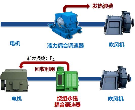繞組永磁耦合調速器節電的奧秘在於,它可將液力耦合調速器、渦流永磁調速器產生的轉差功率轉變成電能引出再利用,高效、節能。目前繞組永磁耦合調速器已廣泛應用於風機、水泵、空預器等動力源進行調速、節能。