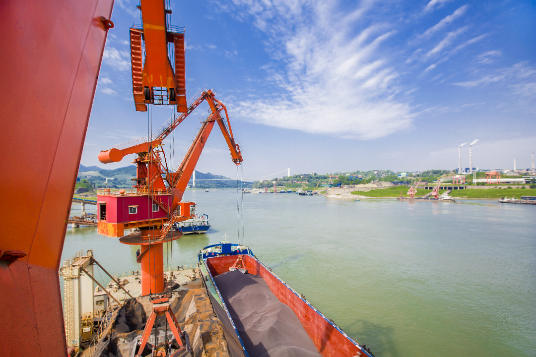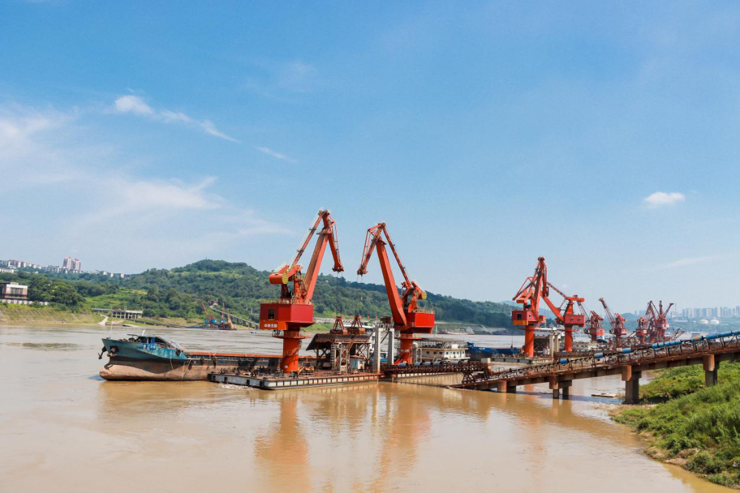 正直洪峰過境當天,長江長壽段猛增至162米!船運成品鋼卷吊裝作業的四碼頭,臨(江)邊作業人員穿戴救生衣背心,正在進行托舉、起升、平移、停頓、下降、定位、擱置的吊裝操作。
