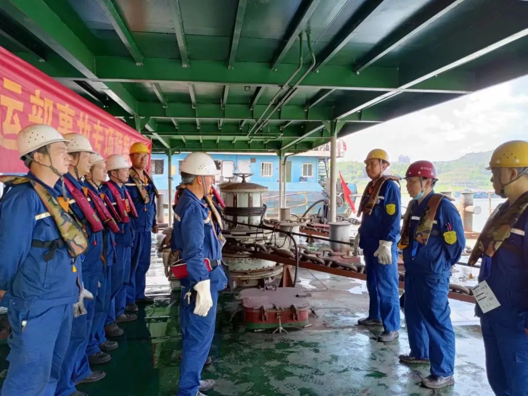 重慶鋼接到通報後第一時間召開了現場緊急辦公會議,布置了一係列防汛工作:實時監控洪峰情況,根據水情變化,控製躉船錨鏈機沉江錨頭、調整岸上鐵牛係緊鋼纜張緊度,及時抬升躉船上移到安全位置,嚴防躉船走錨;躉船短皮帶機出料倉口與陸地皮帶機受料倉口保持一致,保證卸載礦料的順利輸送;強化對離檔、靠檔作業船舶的引導,做好船方人員碼頭集控和專業指揮,嚴禁冒進或違章作業。