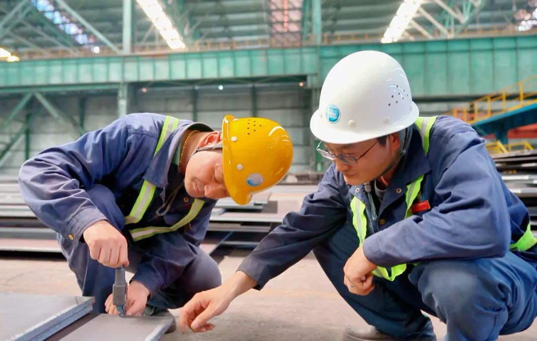 工作人員對鋼板質量進行檢查