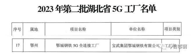 鄂鋼入選2023年第二批湖北省5G工廠名單