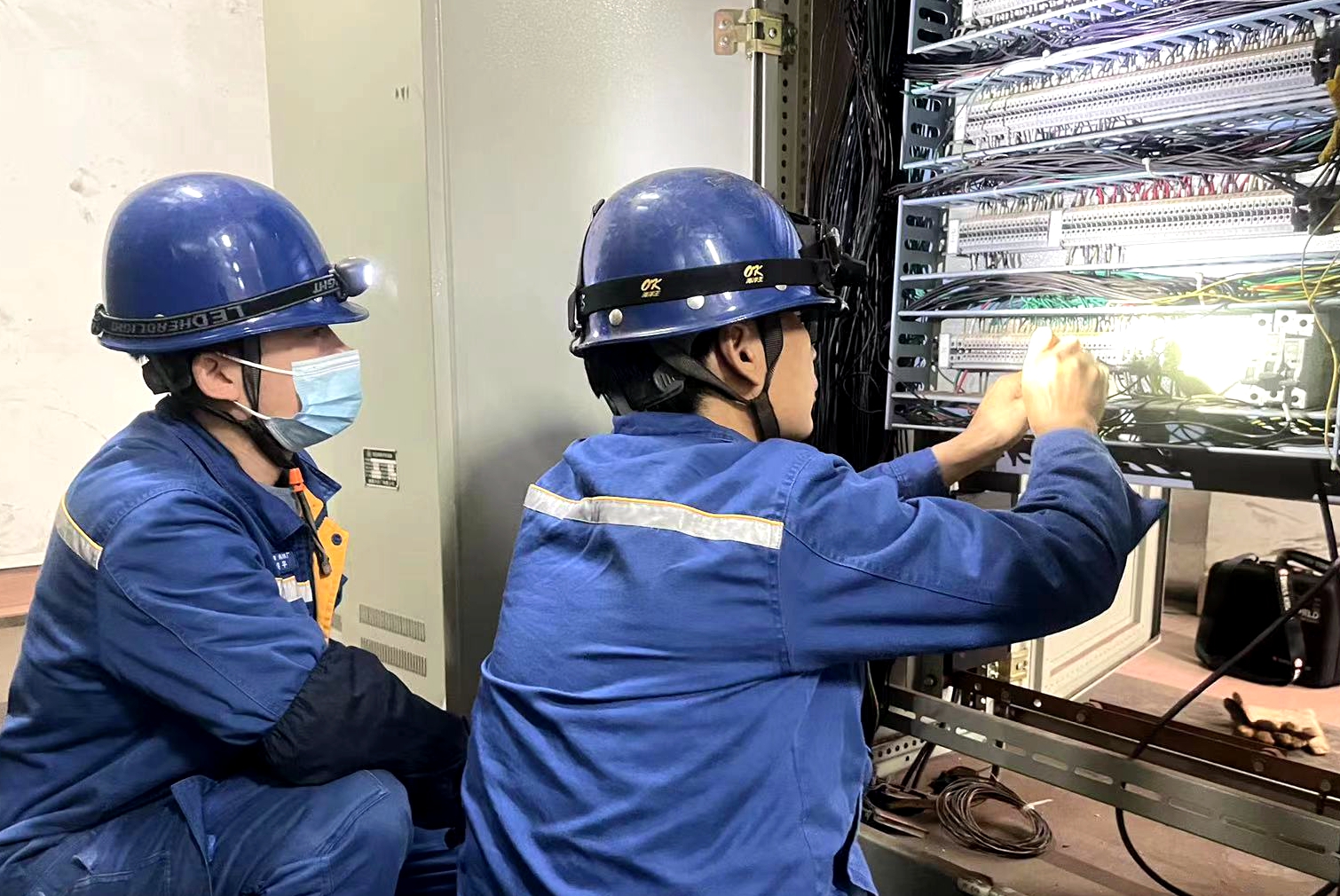 經過討論,改善小組確定了幾項改善措施:一是加裝止擋器信號裝置。現場加裝止擋器光電信號檢測裝置,止擋器放倒到位觸發信號,推車機、撥車機才允許下一步生產流程。二是現場鋪設信號線,連接上電櫃內PLC模塊,布線整理,確保電櫃符合管理規定。三是修改PLC聯鎖程序,製作生產監控畫麵信號提示,及時更新完善電腦程序,確保信號接收反饋正常。