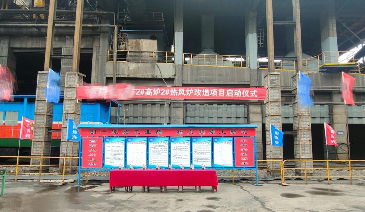 2024年6月5日11時08分,山西省某鋼鐵公司1280m³高爐2號內燃式熱風爐爐殼利舊改造為豫興懸鏈線頂燃式熱風爐開工儀式在熱風爐現場舉行。