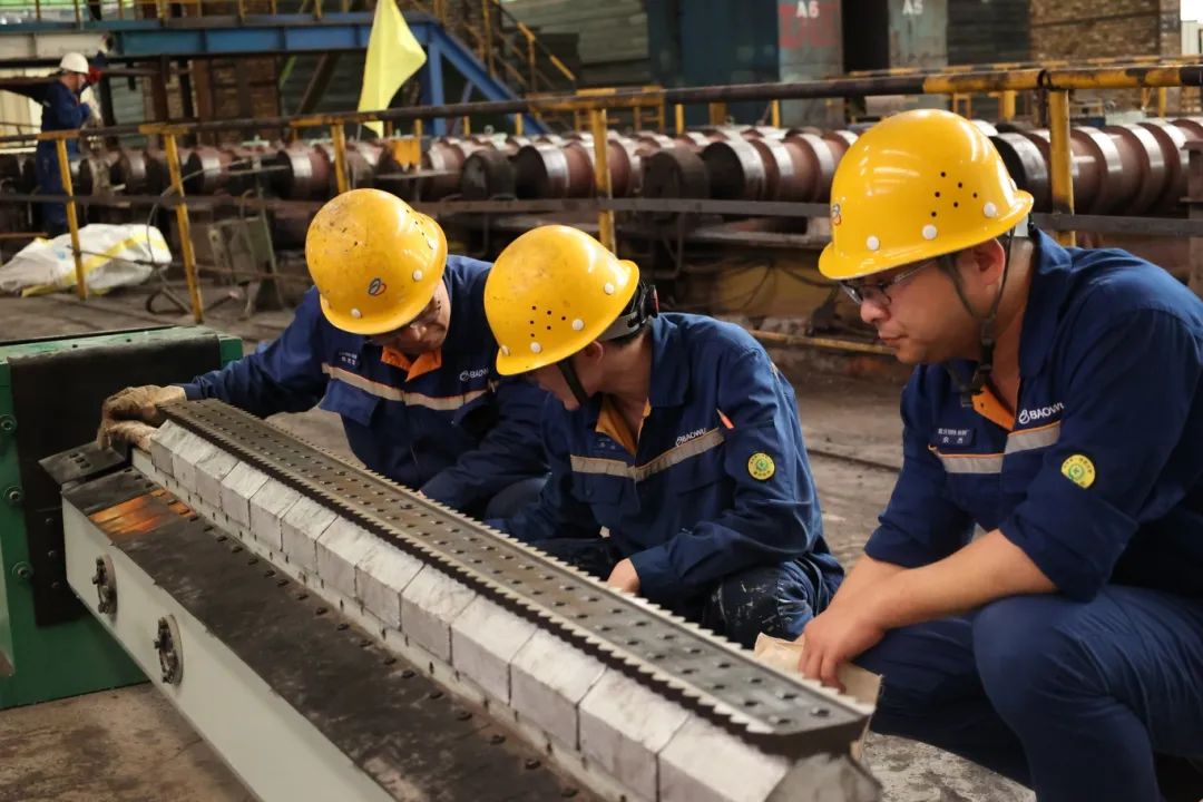 與yu此ci同tong時shi,連lian鑄zhu區qu域yu的de技ji術shu骨gu幹gan們men也ye投tou入ru了le緊jin張zhang的de檢jian修xiu工gong作zuo中zhong。他ta們men穿chuan梭suo於yu龐pang大da的de連lian鑄zhu機ji之zhi間jian,俯fu身shen細xi察cha每mei一yi處chu結jie構gou,手shou持chi檢jian測ce儀yi器qi精jing準zhun采cai集ji運yun行xing數shu據ju。連lian鑄zhu機ji的de穩wen定ding與yu否fou,直zhi接jie關guan乎hu鑄zhu坯pi的de質zhi量liang命ming脈mai。正zheng因yin如ru此ci,他ta們men將jiang此ci次ci檢jian修xiu視shi為wei提ti升sheng設she備bei精jing度du、保障後續順行的關鍵機會,不放過任何一個細節,力求每一處檢修都精益求精。