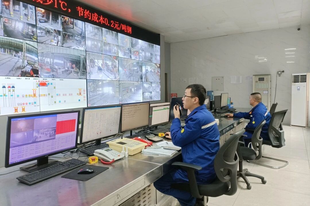 煉鋼端圍繞鐵包周轉率與鐵水溫降管控雙向發力,實現了兩項關鍵指標的曆史性突破。通過全員設備管理、推行“1+1”配包模式,並融合互聯網技術實現鐵包動態智能追蹤,鐵包周轉率提升至7.35次/天,創下曆史新高。同時,依托“爐機節奏動態匹配”機製,靈活調整轉爐兌鐵節奏,結合鐵包全程加蓋、優化廢鋼烘烤工藝,以“熱量換熱量”全麵提升熱能利用效率,最終實現鐵水溫降86℃的曆史性突破。