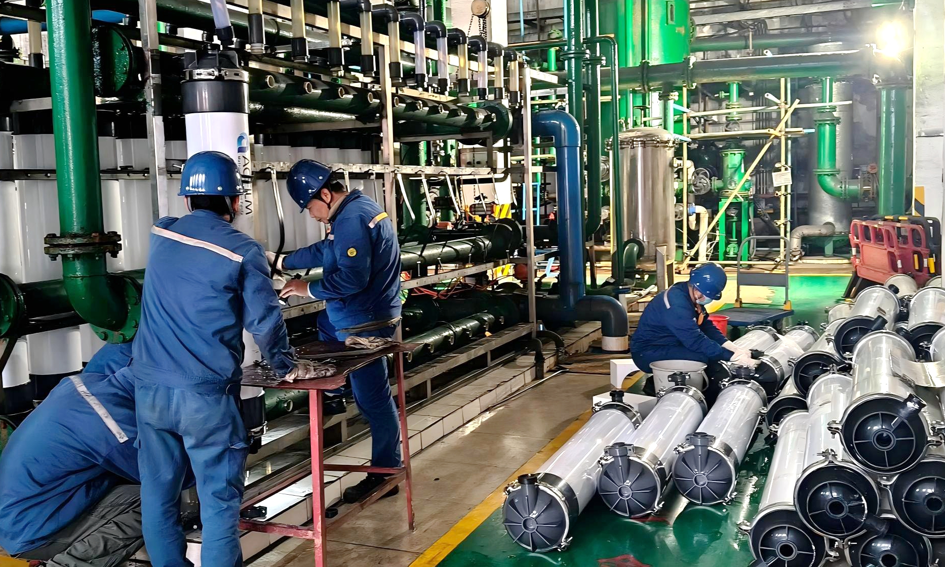 車間團隊以“釜底抽薪”思路推進改造:從1#、2#機組引入高效發電三期全膜法處理除鹽水,保障源頭水質;新增1個DN125出水口專供反滲透製水,破解流量瓶頸;拆除排汙口製水取水口、恢複原生排汙功能,同步完成水箱清洗與防腐處理。改造後,濾芯更換周期從15天延長至90天,年節省濾芯費用4.8萬元,設備啟停頻次減少80%,運維人力成本降低60%,實現“降成本、提效率、穩生產”三重成效。