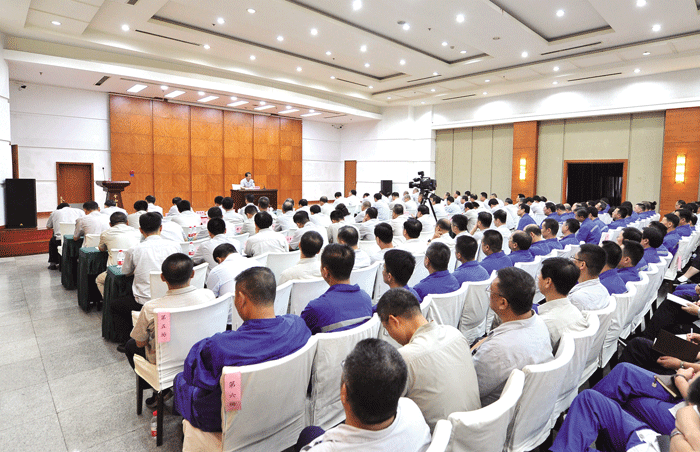 圖為本鋼集團黨委書記、董事長陳繼壯專題黨課現場。