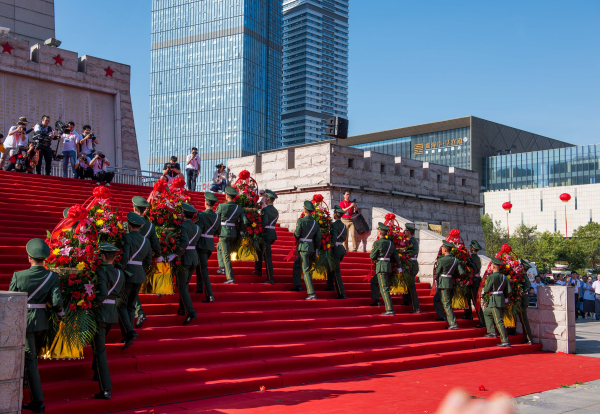 上午8:30,莊嚴的秋收起義紀念碑前,各界人士全體合唱《國歌》,向為中國人民解放事業和共和國建設事業英勇獻身的烈士們默哀,敬獻花籃,並瞻仰秋收起義紀念碑。
