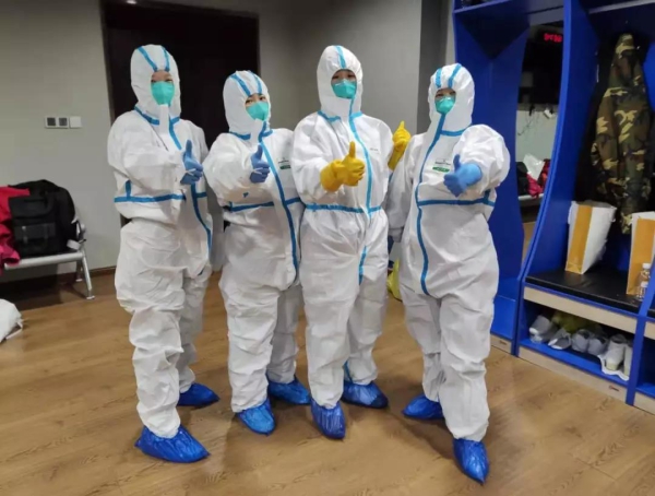 隨sui後hou我wo們men接jie受shou了le係xi統tong的de醫yi學xue知zhi識shi培pei訓xun,努nu力li的de記ji下xia每mei一yi個ge重zhong點dian,在zai培pei訓xun完wan成cheng後hou,我wo們men回hui到dao酒jiu店dian練lian習xi穿chuan脫tuo隔ge離li衣yi,互hu相xiang指zhi導dao監jian督du,不bu落luo下xia每mei一yi個ge細xi節jie。晚wan上shang有you專zhuan業ye的de理li發fa師shi到dao酒jiu店dian給gei我wo們men提ti供gong免mian費fei的de理li發fa,為wei“輕裝上陣”做好準備,我們都把頭發剪短了,有些同事甚至剃光了頭發,讓我很是感動!