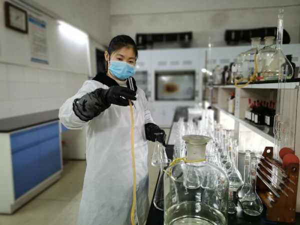 檢驗人員正在認真進行化驗操作