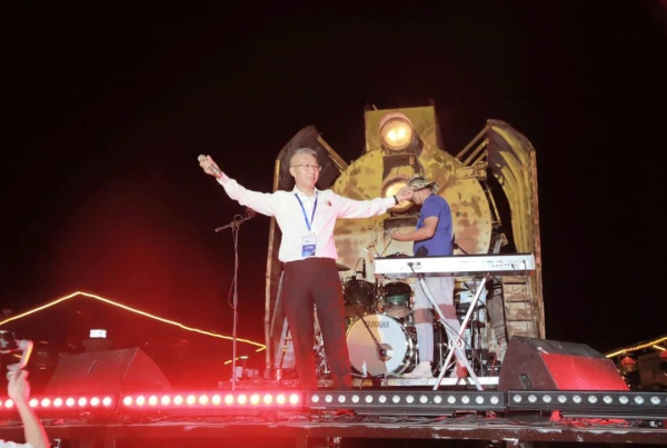 董dong事shi長chang曹cao廣guang江jiang先xian生sheng登deng台tai獻xian唱chang,歌ge聲sheng裏li訴su說shuo著zhe成cheng長chang的de故gu事shi。他ta是shi寧ning鋼gang集ji團tuan的de大da家jia長chang,用yong堅jian實shi的de臂bi膀pang擔dan負fu社she會hui責ze任ren,用yong感gan恩en之zhi心xin反fan哺bu家jia鄉xiang建jian設she。他ta用yong最zui熱re的de情qing誼yi歡huan迎ying風feng雨yu同tong舟zhou的de朋peng友you們men。