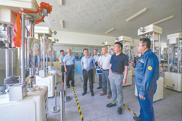 圖為專家們在寶鋼的高溫持久蠕變試驗室觀看試驗結果。(劉繼鳴 攝)