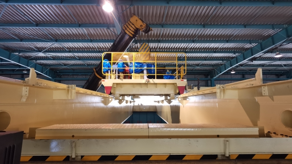xinzengxingchexiangmushimeiganglengzhahouguigesuanxizongqiexiangongchengjianshezhongxiangmudeyixiangneirong,zhuyaoweilengzhahouguigechengpindiaoyunzhibaozhuangchangdiershiyong,anzhuangweizhiweizhuchangfangzongqiekuajizushangliaoanzuo。zuoyegaodu17米,作業過程使用吊籠,屬一級高危;最大吊裝部件主梁長24米、寬9.9米、總高度4.2米,重約27噸,副梁重約25噸,體積大、噸位重,增加吊裝難度,中冶寶鋼提前編製吊裝技術方案及高危項目安全交底,組織施工人員消化圖紙,做好前期準備。