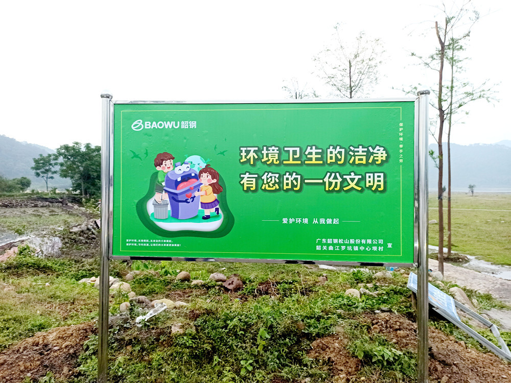 為了完善羅坑大草原衛生管理長效機製,韶鋼鬆山此次還協助羅坑大草原所在的中心壩村設置了環保宣傳欄。