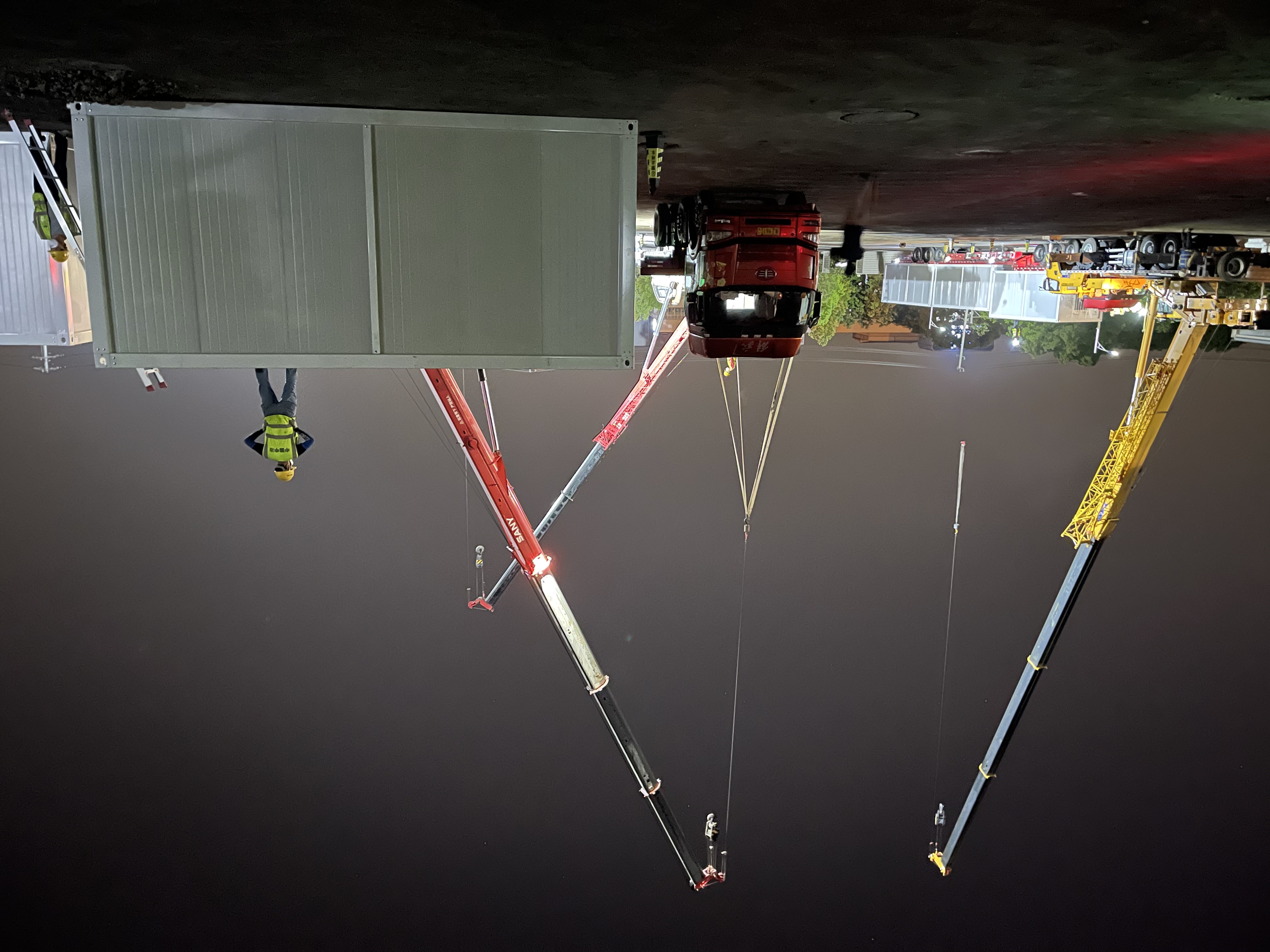 5月1日,上海分公司接到建設任務,迅速組織施工隊伍奔赴現場。上海分公司黨委書記、經理薑銀華統籌指揮,總工程師張曉波總協調,合理安排各級管理人員及作業人員有序進場,實地研究施工方案,落實施工任務、調集施工機械,製定物資供應計劃,克服現場交通和場地不利因素,製定出合理的集裝箱吊運安裝方案。