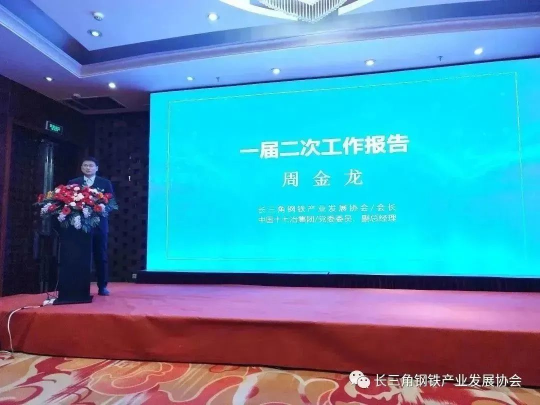 長三角鋼鐵產業發展協會一屆二次理事會會長、中國十七冶集團黨委常委/副總經理周金龍作協會年度工作報告。