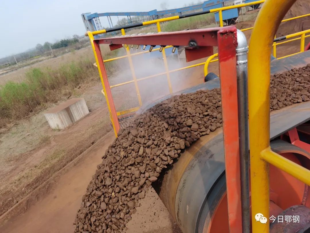 據了解,新堆料機采用了較為先進的環保設施,霧狀噴嘴可對礦石物料加濕,減少堆料過程中的揚塵。
