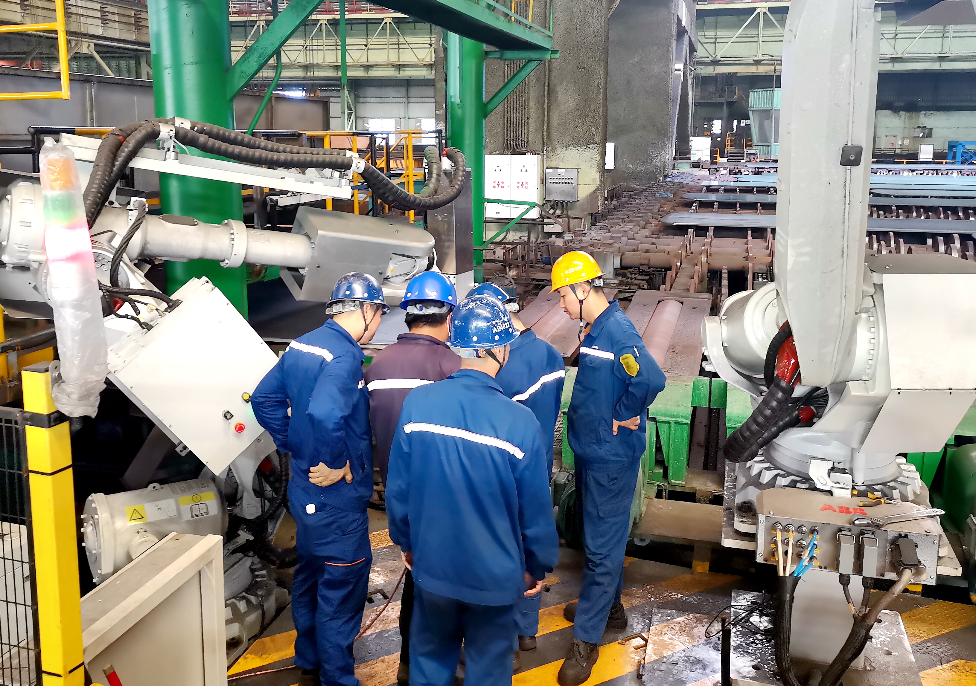 熱噴印機完成升級改造後,采用了工業機器人,可實現高溫鋼板的在線自動標識,標識後下線堆冷,實現全自動化控製,無需人工進行標識,提高了生產的效率,並確保了每件鋼板的信息準確無誤,降低了員工的勞動強度,有效避免了相應的安全隱患。(陳睿)