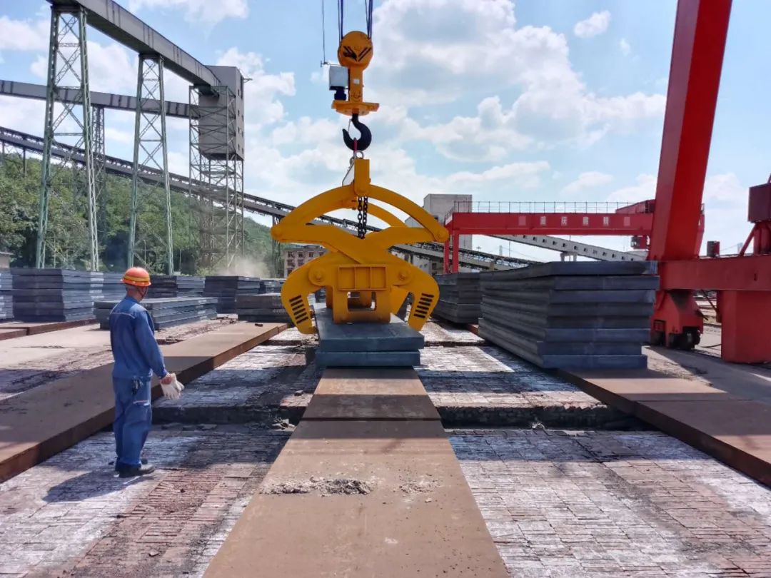從工模具方麵,物流運輸部專門訂購了兩榀鋼坯專用夾具、旋轉吊具,並為碼頭庫5號、6號行車加裝了隔熱層。因熱鋼坯專用夾具不同於其他常見夾具,其作用是固定熱坯,確保吊運過程中不擺動、旋轉、傾斜,能夠快速、準確地定住熱坯,大大節約了轉運時間,提高了作業安全性。