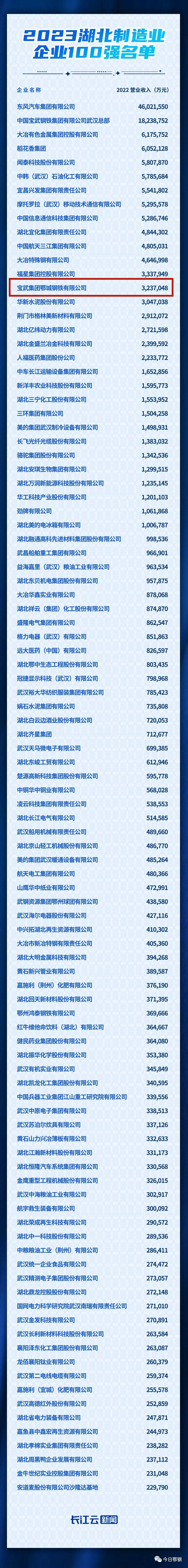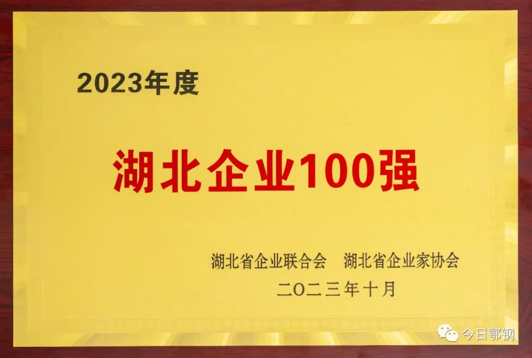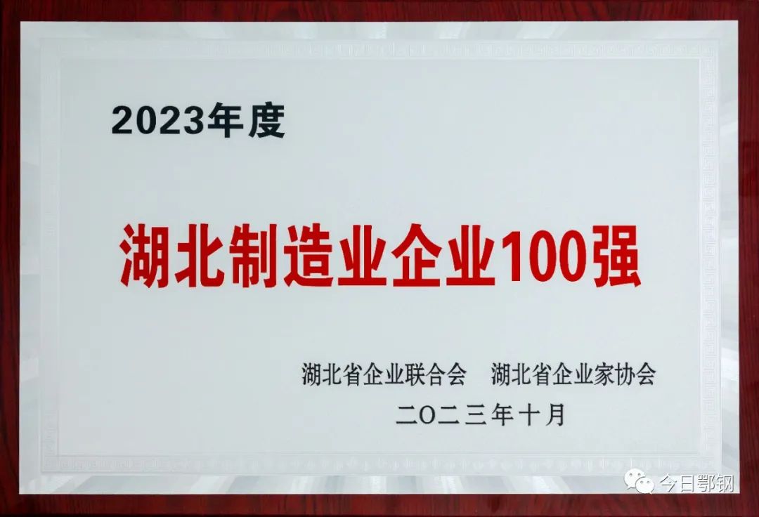 2023湖北企業“三項100強”榜單昨日發布,鄂城鋼鐵上榜“2023湖北企業100強、湖北製造業企業100強”名單。