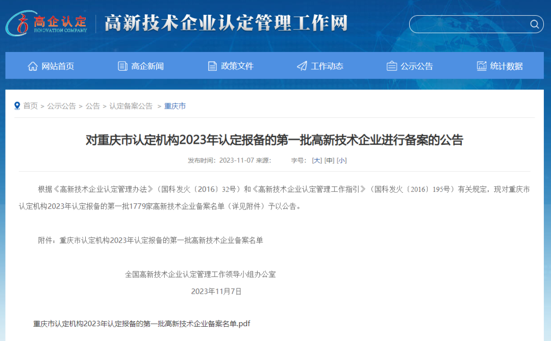 11月7日,全國高新技術企業認定管理工作領導小組辦公室發布《重慶市認定機構2023年認定報備的第一批高新技術企業備案名單》,重慶鋼鐵順利通過2023年“高新技術企業”認證。