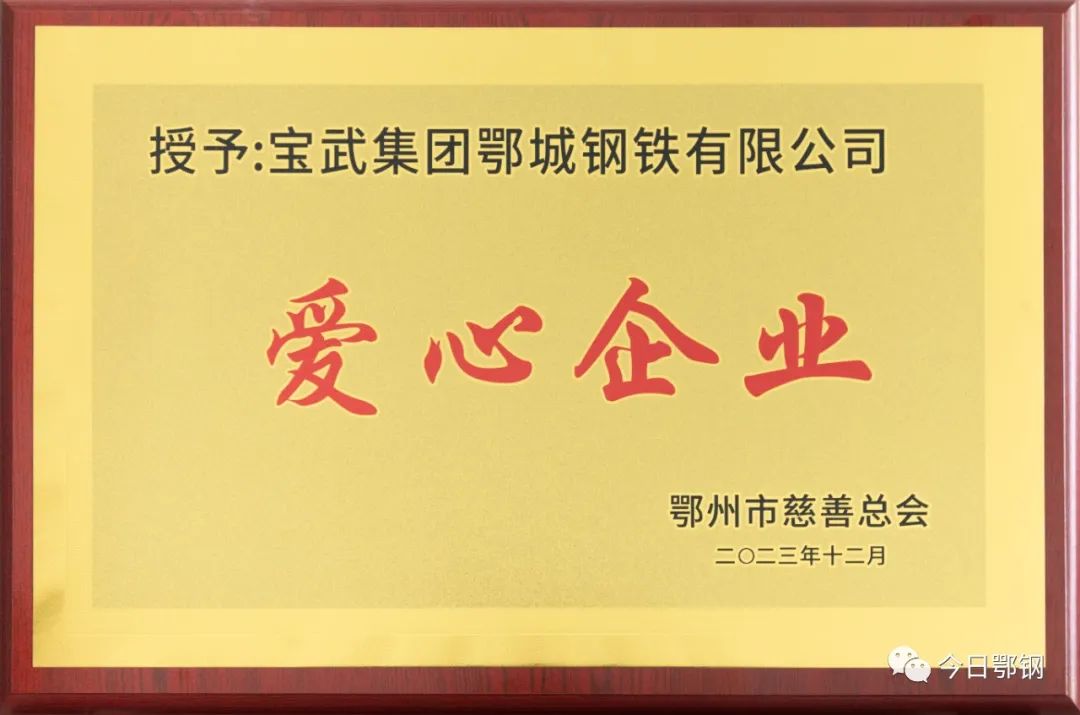 日前,該公司榮獲鄂州市“愛心企業”榮譽。