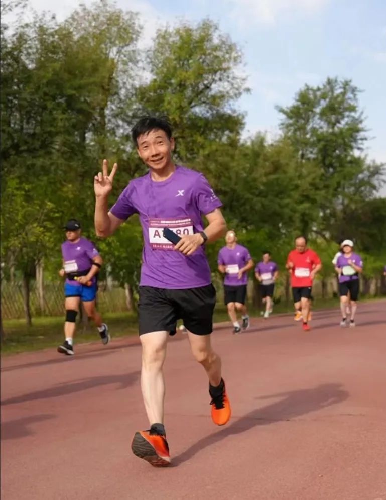 像郭寶香一樣,閆治文站上這個跑道,用了11年。他大學畢業後在湖北工作了十年,前景很好,但他卻作出了離開的決定。他攜妻帶子踏上歸程,加入了剛剛成立的寧夏建龍,成為財企處一名會計管理師,他在這裏結識了一群誌同道合的跑友,也找到了人生的價值感。後來寧夏建龍成立長跑協會,他加入其中,跟著同事每日約跑,石嘴山、銀川,很多集體組織的長跑活動,他都積極踴躍參與其中。