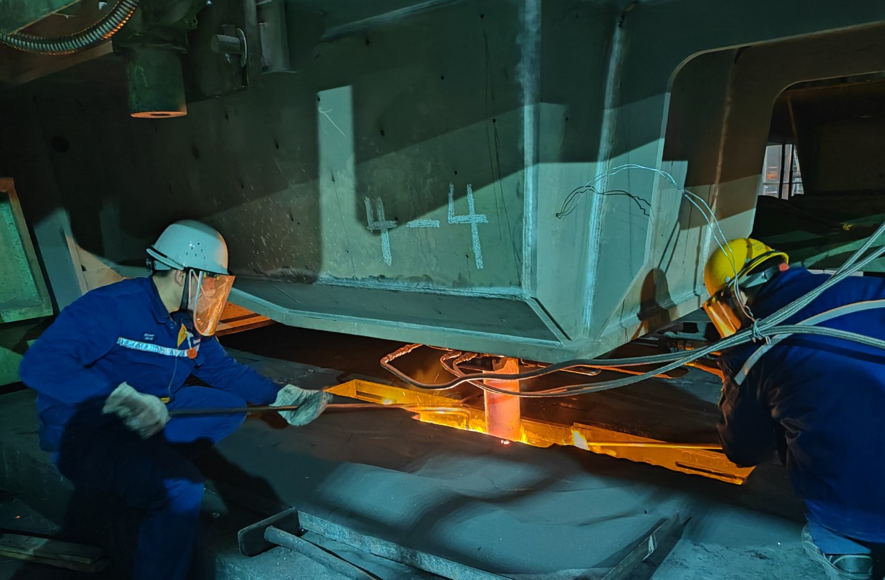 向溫度要效益。今年以來,煉鋼廠深挖降本空間,緊盯鋼軋界麵“88”工程,以提高板坯熱送率為抓手,狠抓過程質量控製。廠領導牽頭開展質量攻關,重點針對氮高、氫高及黏結停車等方麵開展天天讀,減少異常坯下線;協同製造管理部細化不同鑄機鋼種計劃,減少因換包、開停機原因增加頭尾坯、銜接坯下線;緊盯鑄坯切割操作,頭坯采取頭部離線切除後二次熱送;拉速調整幅度控在恒速範圍內,確保鑄坯溫度符合熱送要求。