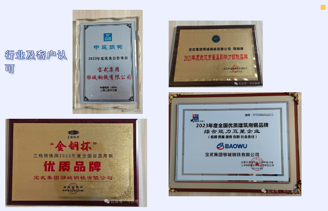 在為客戶創造價值的同時,鄂城鋼鐵也深受客戶信賴,備受行業認同,多次被客戶評為“優秀供應商”,被行業評選為“優質品牌”。