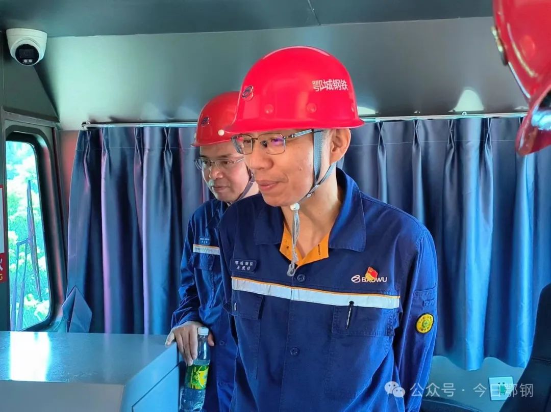 7月8日,炎炎烈日,鄂城鋼鐵公司黨委書記、董事長王虎祥來到物流管理部1號爐出鐵現場調研。他興致勃勃地登上EGCD001號純電機車,體驗機車的操作、駕駛和運行。