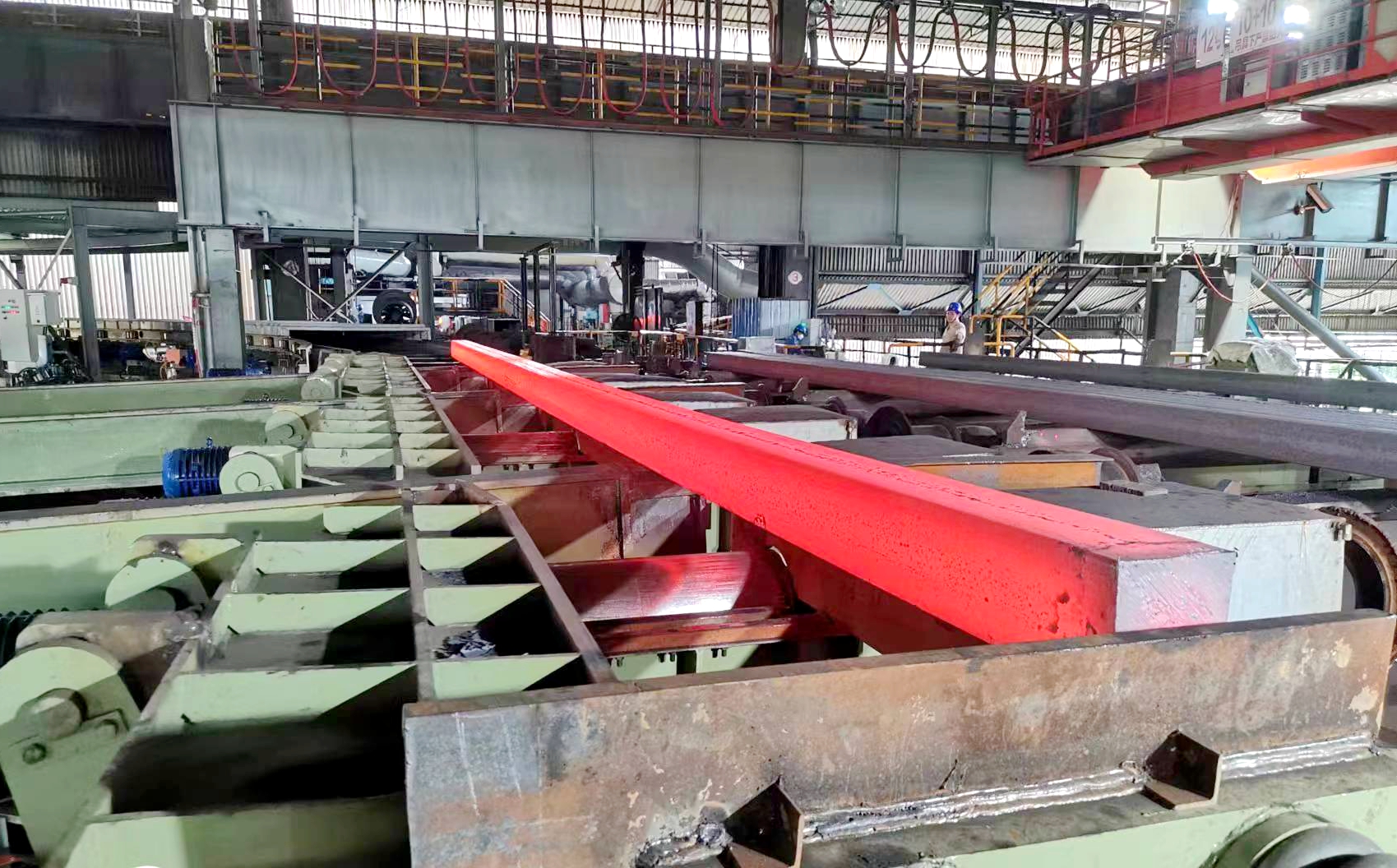 中南股份棒一輥道直送改造項目,是繼棒三、高一輥道直送改造項目達產達效後的又一重要項目,是踐行綠色化、高效化發展的又一具體實踐。棒一輥道直送改造項目通過提高煉鋼廠3號連鑄機定重區至出坯輥道的最高運行速度,增加出坯末端升降擋板,並新建彙流轉彎輥道,鋼坯得以更加高效、穩定地傳輸。根據入爐節奏的需要,絕大部分鋼坯直接送往加熱爐,多餘的鋼坯由往返台架收集,成組後吊入保溫坑。這樣既有效降低了能量的無效流失,同時也減少了加熱爐的加熱時間,達到節能降碳的目的。