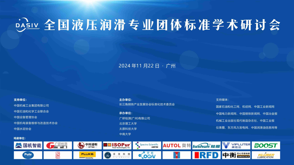 為全麵貫徹黨的二十屆三中全會精神,深入實施《國家標準化發展綱要》和《質量強國建設綱要》,推動國內外液壓潤滑技術標準化協同發展,提升液壓潤滑工程建設團體標準質量水平和團體標準化學術水平,值第十一屆企業潤滑管理高峰論壇召開之際,全國液壓潤滑專業團體標準學術研討會,2024年11月22日下午,在廣州召開。