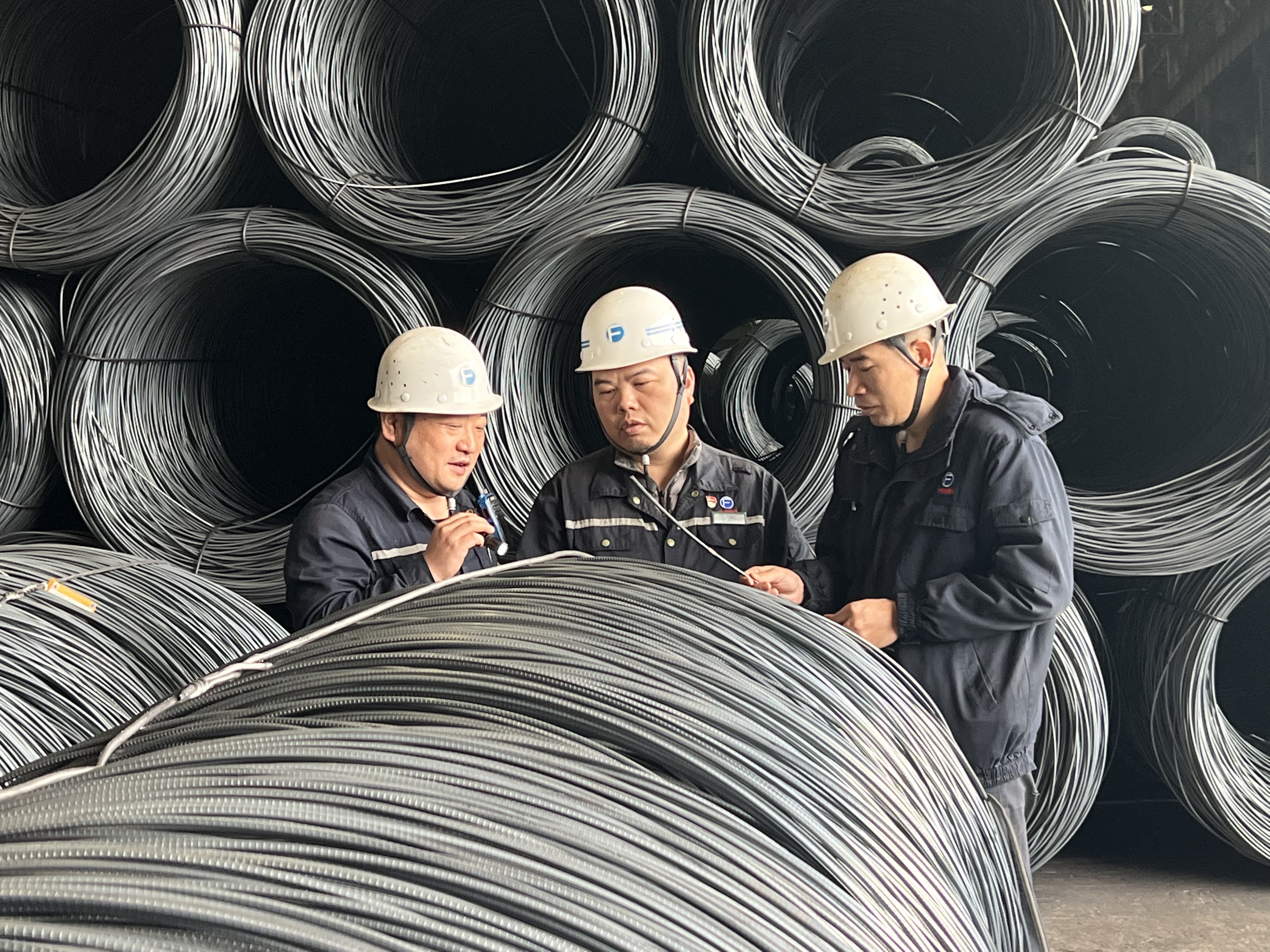 圖為技術人員正在現場查看韓標鋼產品質量