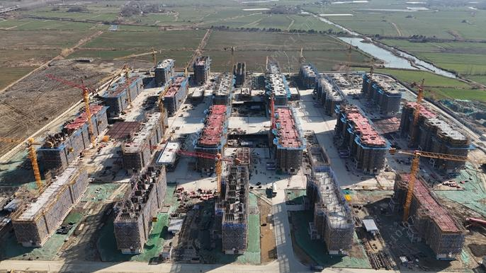 鄭蒲港新區城市更新A小區項目位於馬鞍山市鄭蒲港新區和州大道南段,總建築麵積約為327940.27平方米,主要建設25棟11-18層住宅樓、2棟配套商業、1棟幼兒園、1棟農貿市場及配電房、地下車庫、配套物業及社區用房等。一季度以來,項目團隊堅持“日保周、周保月、月保總體計劃”的路徑,優化施工組織、加強資源配置、強化現場管控,紮實開展“基礎管理提升三年行動”,聚焦重點任務、關鍵節點“靶向發力”,確保各項節點穩步推進。截至目前,項目地庫區域已全部封頂,8#住宅樓預計將於近期封頂,全部單體已進入二次結構砌築準備階段。