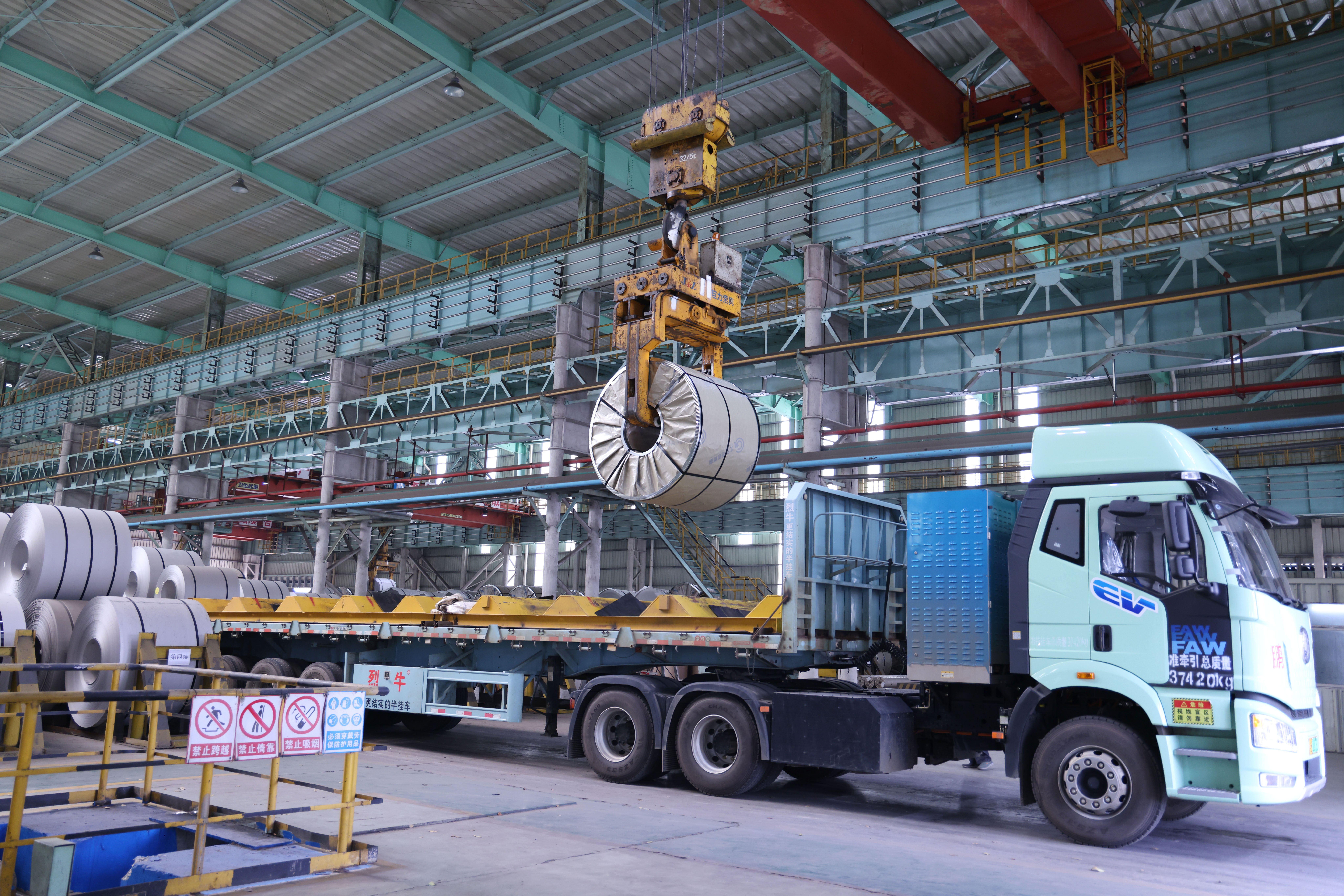 圖為3月14日北港新材料不鏽鋼卷裝車發運