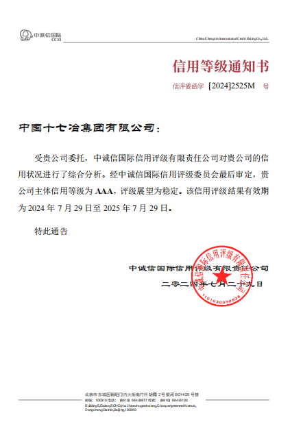 雙AAA評級是企業實力和信譽的象征,獲得主體信用雙AAA評級後,中國十七冶的知名度以及品牌影響力、市場公信力將進一步提升,有利於拓展國內外市場,獲取更廣泛的融資渠道、更(geng)具(ju)優(you)勢(shi)的(de)融(rong)資(zi)成(cheng)本(ben)和(he)更(geng)優(you)質(zhi)的(de)合(he)作(zuo)夥(huo)伴(ban),助(zhu)力(li)企(qi)業(ye)在(zai)新(xin)一(yi)輪(lun)市(shi)場(chang)競(jing)爭(zheng)中(zhong)搶(qiang)占(zhan)發(fa)展(zhan)先(xian)機(ji)。中(zhong)國(guo)十(shi)七(qi)冶(ye)將(jiang)以(yi)此(ci)為(wei)契(qi)機(ji),持(chi)續(xu)深(shen)化(hua)改(gai)革(ge)創(chuang)新(xin),強(qiang)化(hua)精(jing)細(xi)管(guan)理(li),做(zuo)實(shi)產(chan)業(ye)發(fa)展(zhan),做(zuo)優(you)結(jie)構(gou)布(bu)局(ju),加(jia)快(kuai)推(tui)動(dong)“四化”轉型,厚植發展優勢,激揚發展潛力,以更高質量的發展業績回報股東、回饋社會,為推動央企高質量發展貢獻新的更大力量。