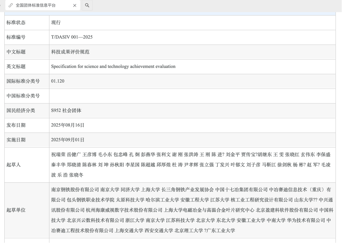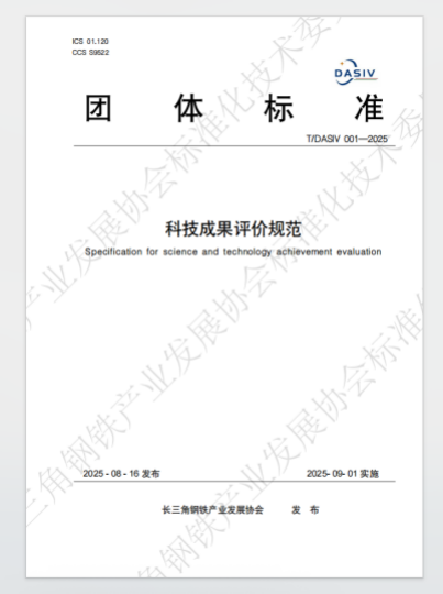 長三角鋼鐵產業發展協會《科技成果評價規範》標準全國標準官網正式發布