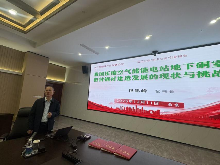 2025年12月11日下午,長三角鋼鐵產業發展協會在南鋼主辦 CAES(壓縮空氣儲能)用鋼及工程應用學術研討會。該會議為協會成立五周年學術活動之一。