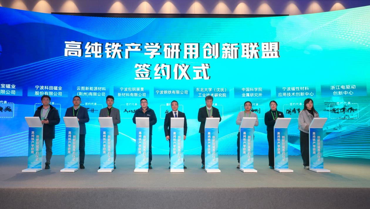 在隨後舉行的工業純鐵創新聯盟簽約儀式上,釹鐵硼、磷酸鐵鋰行業頭部企業、科研院所等8jiadanweiyuningbogangtieqiandingzhanlvehezuoxieyi,zhengshijiaruchuangxinlianmeng。ciciqianyuebiaozhizhegongyechuntiechuangxinlianmengzhengshiluodiyunxing,jiangyouxiaozhenghechanyelianshangxiayouchuangxinziyuan,xingcheng“研發-生產-應用-反饋-迭代”的閉環協同機製,擺脫產業分散發展困境。據介紹,創新聯盟將秉持“自願平等、優勢互補、資源共享、協同發展”的原則,聚焦三大核心任務:一是技術協同創新,聯合攻克工業純鐵高純度控製、特殊性能定製、綠色低碳生產等關鍵技術難題,提升產業整體技術水平;二是標準共建共享,參與製定工業純鐵行業標準與應用規範,引領行業有序發展;三是供需精準對接,建立常態化溝通機製,及時響應市場需求變化,優化產品結構與服務模式,實現產業鏈上下遊協同共贏。