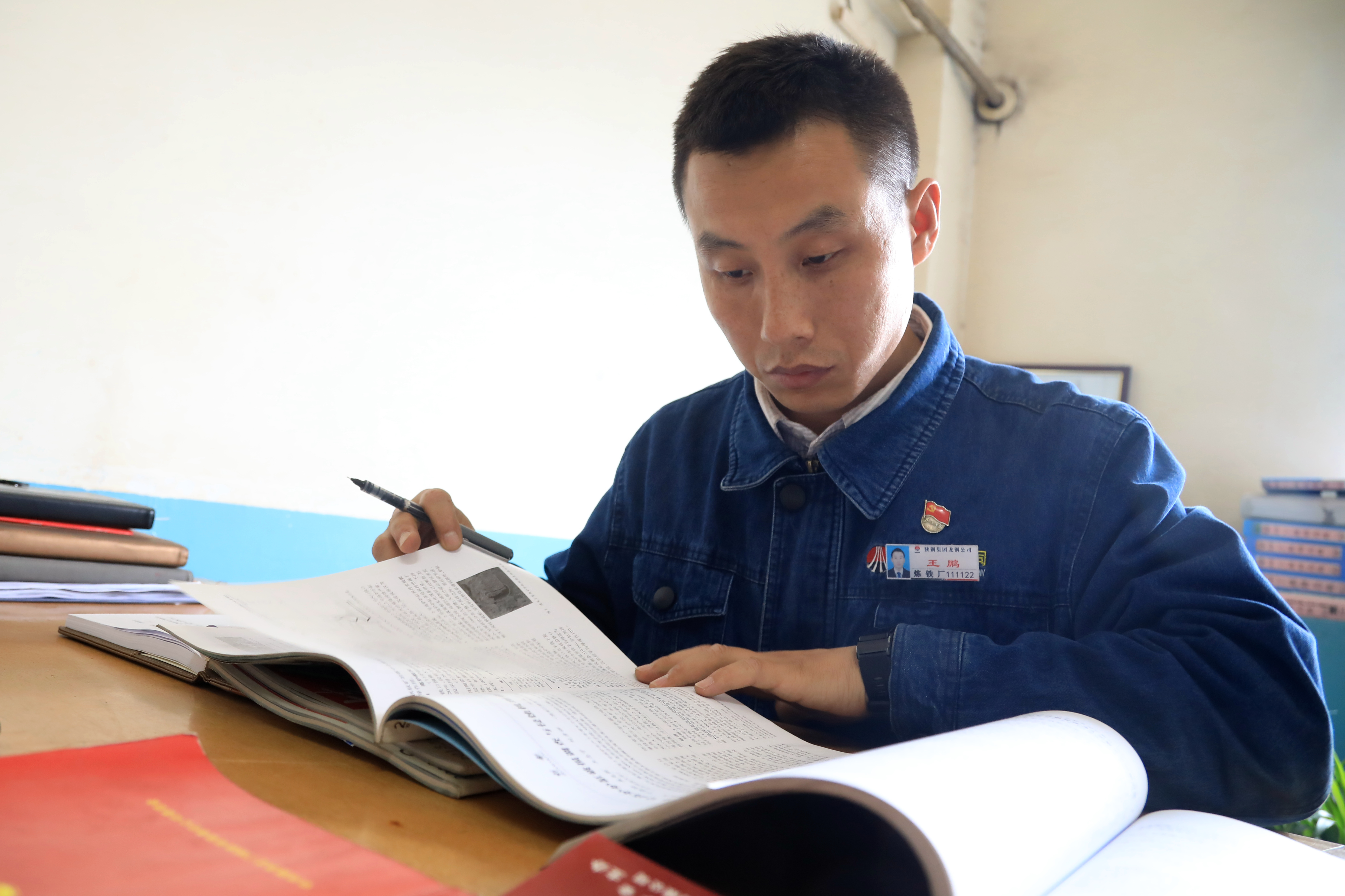 他每天給自己定下一個小目標,始終堅持著“不學懂就不能下班”的de工gong作zuo態tai度du,經jing曆li了le短duan時shi間jian的de基ji層ceng一yi線xian鍛duan煉lian,就jiu初chu步bu掌zhang握wo了le高gao爐lu生sheng產chan的de基ji本ben工gong藝yi原yuan理li。由you於yu他ta的de勤qin學xue苦ku練lian和he處chu事shi果guo斷duan,他ta在zai同tong批pi新xin工gong中zhong最zui終zhong脫tuo穎ying而er出chu,破po格ge提ti拔ba為wei高gao爐lu見jian習xi副fu工gong長chang。在zai擔dan任ren見jian習xi副fu工gong長chang以yi後hou,他ta深shen知zhi肩jian上shang的de重zhong責ze,像xiang一yi塊kuai海hai綿mian一yi樣yang不bu斷duan吸xi取qu著zhe高gao爐lu操cao作zuo知zhi識shi,時shi常chang跟gen隨sui師shi傅fu龐pang文wen龍long親qin臨lin一yi線xian查zha看kan原yuan燃ran料liao情qing況kuang、了解設備運轉狀況。業餘時間,他更是從網上自己購買了《高爐生產知識問答》《高爐布料規律》《煉鐵學》等高爐專業書籍,不斷學習進步,一步一步向著自己既定的目標不斷奮進。