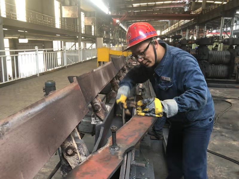 “生命不止,奮鬥不息”,這zhe是shi每mei個ge軋zha鋼gang人ren的de人ren生sheng信xin條tiao。而er年nian輕qing的de棒bang二er作zuo業ye區qu技ji術shu員yuan周zhou偉wei也ye不bu例li外wai,他ta有you夢meng想xiang,敢gan拚pin搏bo,工gong作zuo一yi年nian有you餘yu,憑ping借jie著zhe自zi己ji的de努nu力li,迅xun速su從cong一yi名ming精jing軋zha工gong成cheng長chang為wei作zuo業ye區qu工gong藝yi技ji術shu員yuan。任ren職zhi技ji術shu員yuan期qi間jian,他ta參can加jia了leφ20K4孔kong型xing的de更geng改gai和he加jia熱re爐lu的de大da修xiu工gong作zuo。別bie看kan他ta總zong架jia著zhe一yi副fu眼yan鏡jing,斯si斯si文wen文wen的de樣yang子zi,其qi實shi他ta是shi一yi個ge在zai工gong作zuo上shang極ji其qi認ren真zhen的de人ren,經jing常chang為wei了le鋼gang材cai工gong藝yi和he質zhi量liang,在zai高gao達da六liu十shi餘yu度du的de軋zha鋼gang現xian場chang一yi待dai就jiu是shi五wu六liu個ge小xiao時shi。為wei了le保bao證zheng每mei個ge設she備bei都dou處chu於yu良liang好hao的de運yun轉zhuan狀zhuang態tai,他ta經jing常chang奔ben走zou在zai整zheng條tiao軋zha線xian的de角jiao角jiao落luo落luo。看kan!此(ci)時(shi)的(de)他(ta)正(zheng)在(zai)聚(ju)精(jing)會(hui)神(shen)的(de)檢(jian)查(zha)設(she)備(bei)維(wei)修(xiu)後(hou)的(de)狀(zhuang)況(kuang),手(shou)裏(li)拿(na)著(zhe)手(shou)電(dian),時(shi)而(er)側(ce)身(shen)看(kan)外(wai)部(bu)結(jie)構(gou),時(shi)而(er)頭(tou)伸(shen)進(jin)去(qu)檢(jian)查(zha)內(nei)部(bu)維(wei)修(xiu)情(qing)況(kuang),為(wei)穩(wen)定(ding)生(sheng)產(chan)做(zuo)好(hao)充(chong)分(fen)準(zhun)備(bei)工(gong)作(zuo)。俗(su)話(hua)說(shuo)得(de)好(hao):“奮鬥的青春最美麗,無奮鬥,不青春”。他就是這樣一個敢於挑戰,,隨時都能全身心投入工作,盡職盡責的優秀青年。