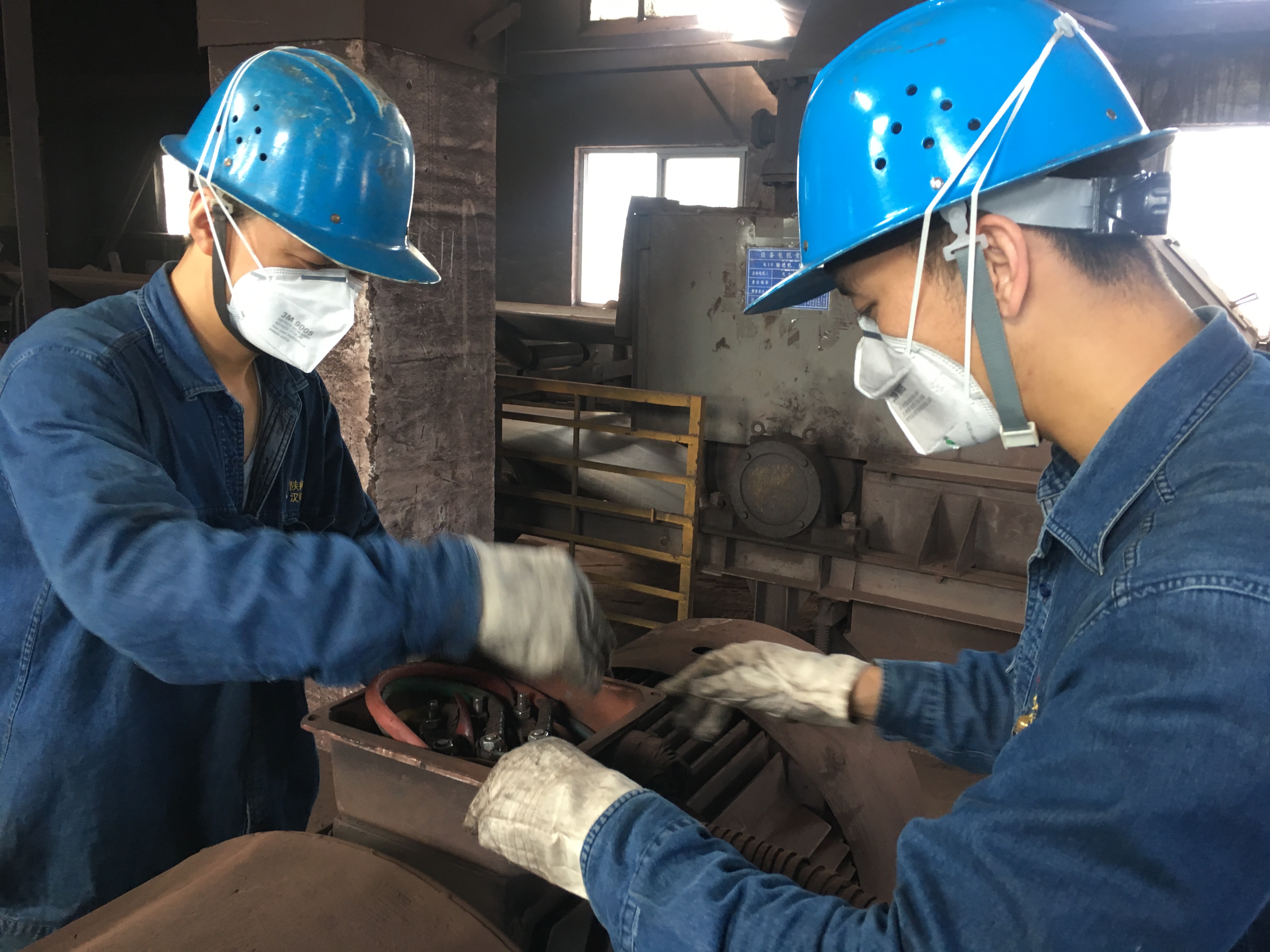 早上11點,空氣炙烤,煉鐵工段的張工,正摸索奮戰在悶熱的風機房內,此刻的他絲毫不顧汗水,正在對1#風機房101#、102#風機進行電機接線檢查。