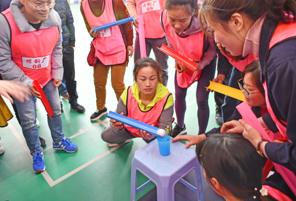 ——活動玩得很開心。在“三八”國際勞動婦女節前後,方大九鋼舉辦一係列有特色的趣味活動,如“攜手飛舞躍大繩”“團結一家親綁腿跑”“逐夢奮進珠行萬裏”等,女工的業餘文化生活充實、快樂,幸福感爆棚。
