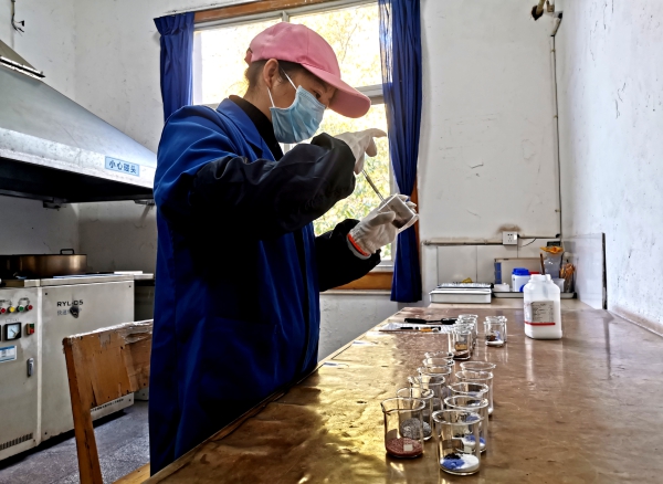 圖為化驗女工在對原燃料進行分析時情景。(張俊攝)