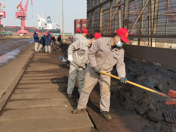 通過義務勞動,廠區主幹道路因冬季寒潮和雨雪產生的積雪、淤泥得到了徹底清理,現場衛生死角和容易產生揚塵的環保隱患得到了根本整治。活動累計清理清掃廠區縱三路、橫五路和海關監管區圍網兩側道路1300餘米,完成現場衛生死角清理8個,進一步鞏固提升了“綠色港口”的建設成果,切實增強了幹部職工凝聚力和“以廠為家”的企業認同感。