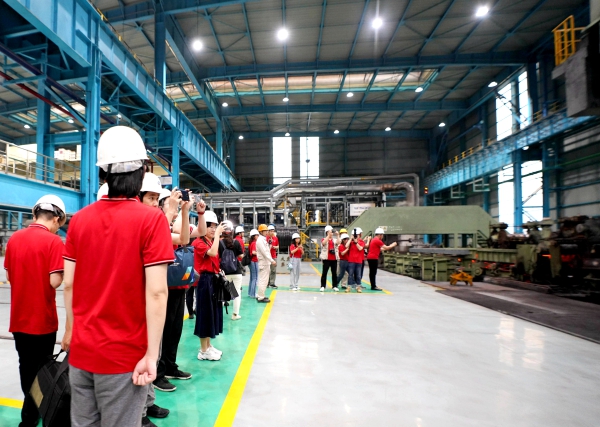 “行走紅三角 奮進小康路”主題采訪記者17日走進韶鋼智慧中心、717風度書房、特軋廠高三線,了解韶鋼建廠曆史、改革發展、轉型升級、“廠區變園區”等情況。