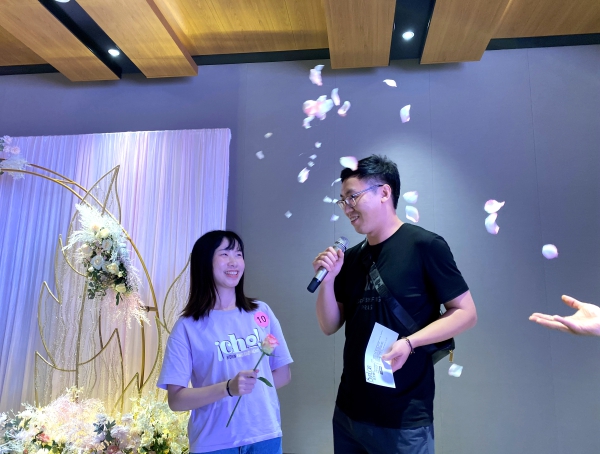 美妙的時光總是短暫的,最後到了激動人心的投票及牽手表白環節。根據男生女生互表感情投票,選出了最受歡迎心動男生、女生,並有3對青年男女當場成功牽手。甜蜜告白牆前,男嘉賓拿著手上的玫瑰,大膽地對心儀女生進行表白,“感謝公司搭建這麼好的平台,讓我認識了你,如果有機會,我想餘生都是你。”台下響起了熱烈歡快的掌聲。
