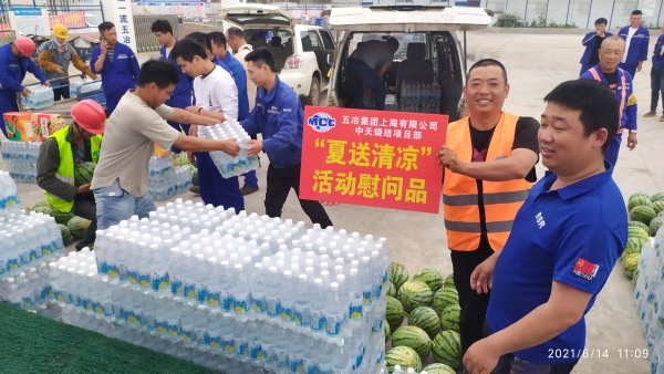 6月的南通驕陽似火,為確保一線作業工人的身心健康,合理組織施工建設,14日,中國五冶中天綠色精品鋼燒結項目組織開展“高溫慰問到一線、情係基層送清涼”活動,為奮戰在施工一線的員工送去一份貼心的涼意。