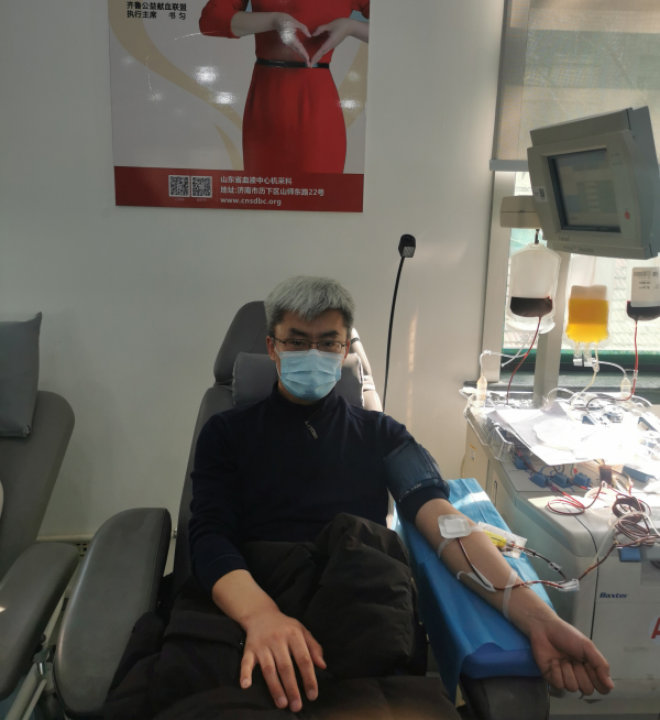 2020年1yue,jinanshilaiwuqumoudanweizhigongyinbinglaijinanshiquyiyuanzhiliao,youyubingqingteshu,jixudaliangxuexiaobangongying。jiedaoshangjigonghuizuzhidedongyuanhaozhao,jigangjituangongsigonghui、團委迅速發出捐獻血小板的號召。得到消息的李鵬,根據自己多次捐獻血小板的經驗,及時調整飲食,很好地控製了血小板各項檢測指標,保障了血小板質量,一次通過各項指標檢驗,成功完成了兩個治療單位的血小板捐獻。