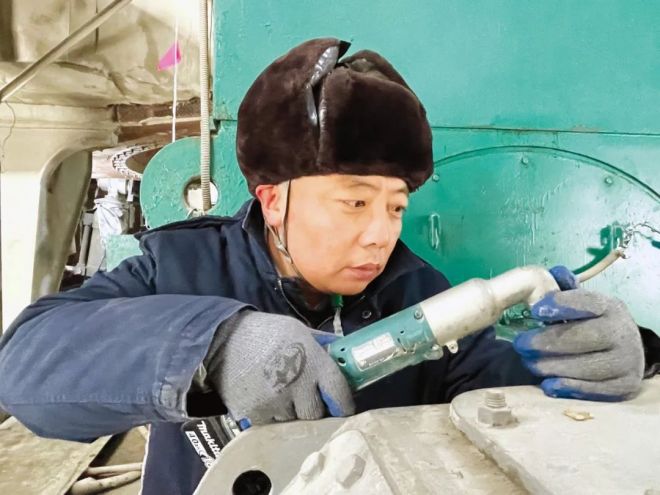 一(yi)塊(kuai)排(pai)土(tu)機(ji)襯(chen)板(ban)一(yi)百(bai)多(duo)斤(jin),冬(dong)天(tian)裏(li),摸(mo)一(yi)下(xia)都(dou)是(shi)刺(ci)骨(gu)的(de)冷(leng),而(er)更(geng)換(huan)襯(chen)板(ban)是(shi)班(ban)組(zu)固(gu)定(ding)的(de)包(bao)保(bao)維(wei)護(hu)任(ren)務(wu),楊(yang)宏(hong)林(lin)和(he)工(gong)友(you)們(men)每(mei)次(ci)都(dou)是(shi)齊(qi)心(xin)合(he)力(li)地(di)完(wan)成(cheng);冬季生產,排料臂的水除塵裝置容易結冰,三個人就一點點清除設備上的冰溜子,消除了安全隱患。